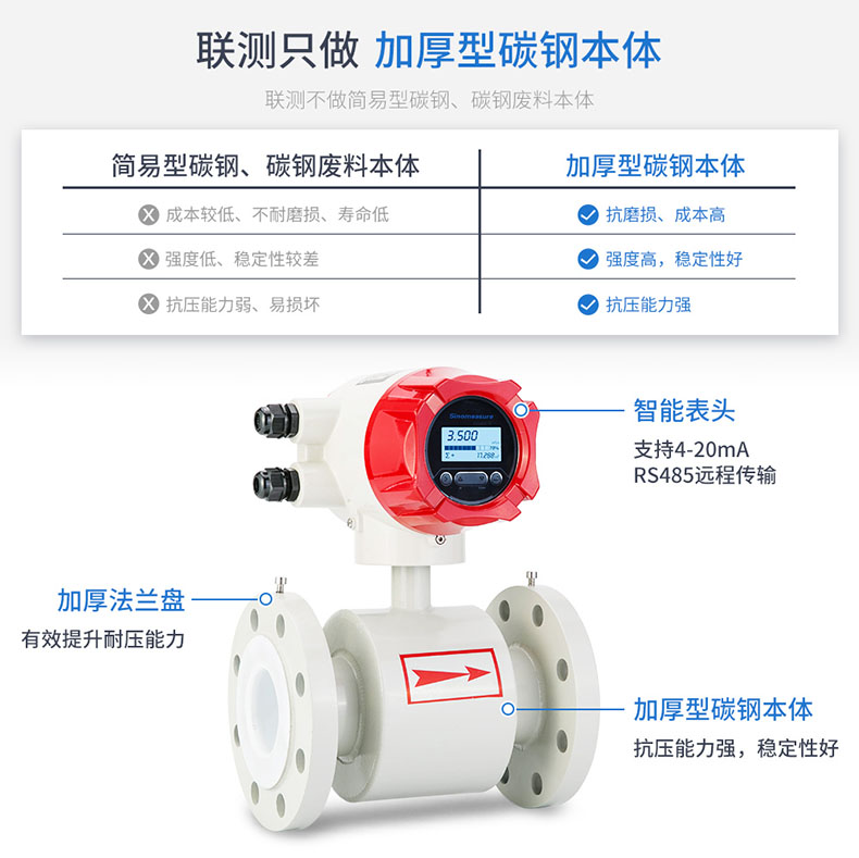 聯(lián)測LDG電磁流量計適用于化工助劑、海綿城市、給水排水、水利灌溉、水處理、污水處理(環(huán)保污水控制、化工污水、電鍍污水)、造紙漿液(紙漿)、泥漿、醫(yī)藥原料、食品等工農(nóng)業(yè)的生產(chǎn)公司過程流量測量和控制,標配485通訊功能。