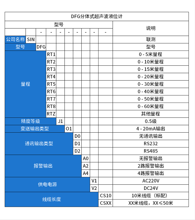 聯測SIN-DFG分體式超聲波液位計