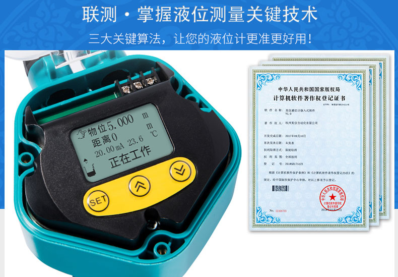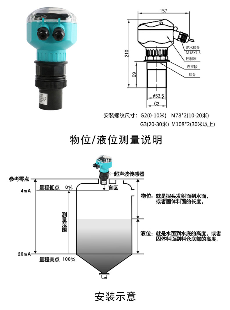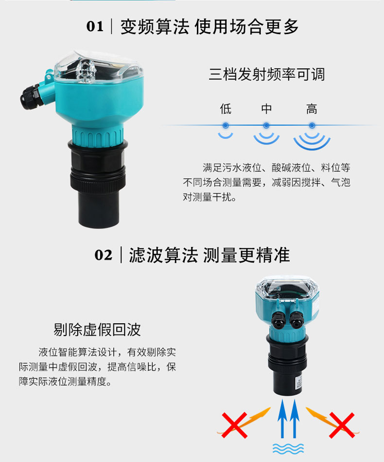 在測(cè)量中超聲波脈沖由傳感器(換能器)發(fā)出,聲波經(jīng)液體表面反射后被同一傳感器接收或超聲波接收器,通過(guò)壓電晶體或磁致伸縮器件轉(zhuǎn)換成電信號(hào),并由聲波的發(fā)射和接收之間的時(shí)間來(lái)計(jì)算傳感器到被測(cè)液體表面的距離。 由于采用非接觸的測(cè)量,被測(cè)介質(zhì)幾乎不受限制,可廣泛用于各種液體和固體物料高度的測(cè)量。