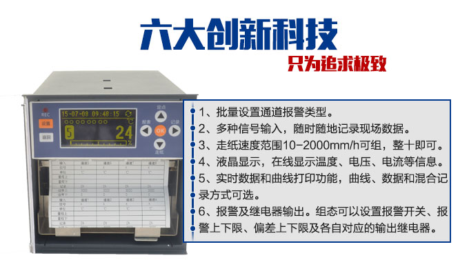 SIN-R1200有紙記錄儀最多具有8路輸入通道,通道之間采用點(diǎn)點(diǎn)隔離的方式。每路通道均可以接收多種信號(hào),如:熱電偶信號(hào)、熱電阻信號(hào)、電壓信號(hào)、電流信號(hào)等。記錄儀可以對(duì)被測(cè)信號(hào)進(jìn)行數(shù)字顯示、趨勢(shì)記錄以及數(shù)字記錄,能在110mm寬的紙格上同時(shí)記錄刻度值、時(shí)間以及每個(gè)信號(hào)的曲線并且將通道號(hào)印在各通道的軌跡旁邊。
